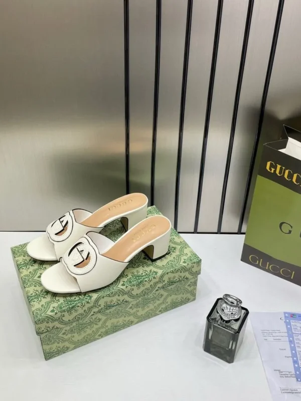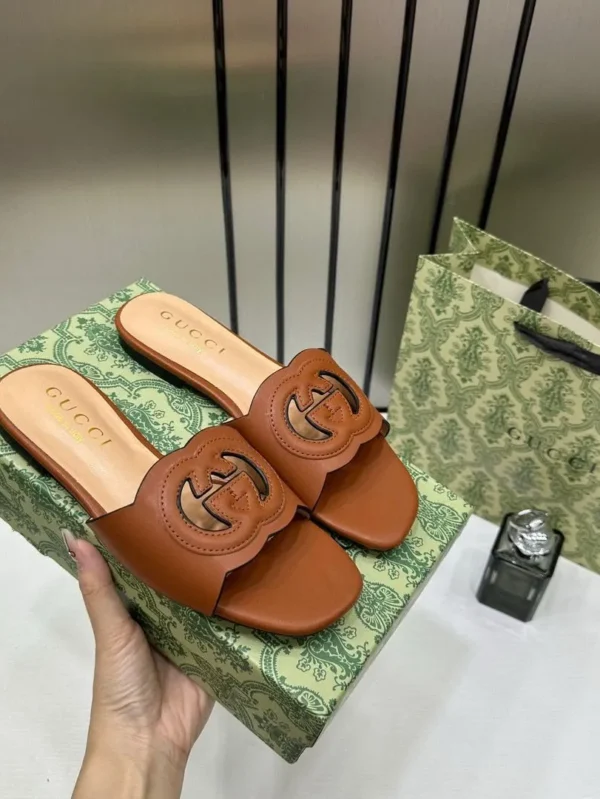 Gucci Premium Brown Leather Interlocking G Flat Slides Stylish