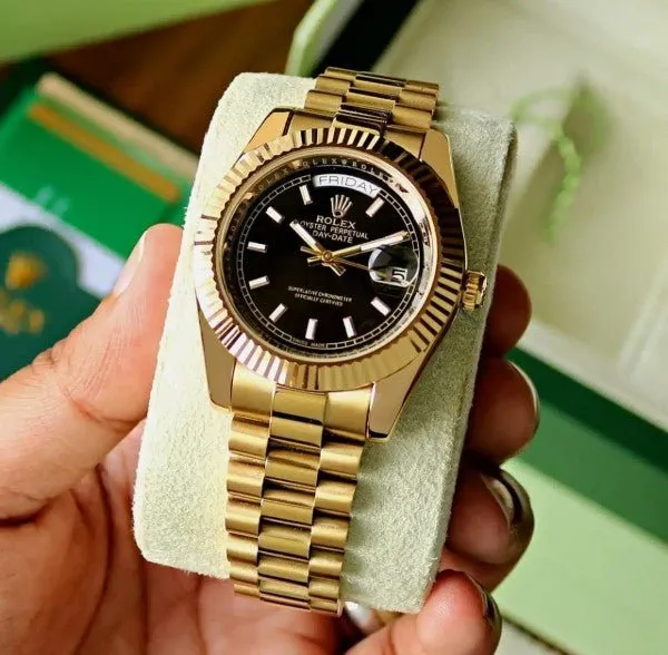 Rolex Oyster Perpetual Day Date Automatic Gold-Black Diamond Watch