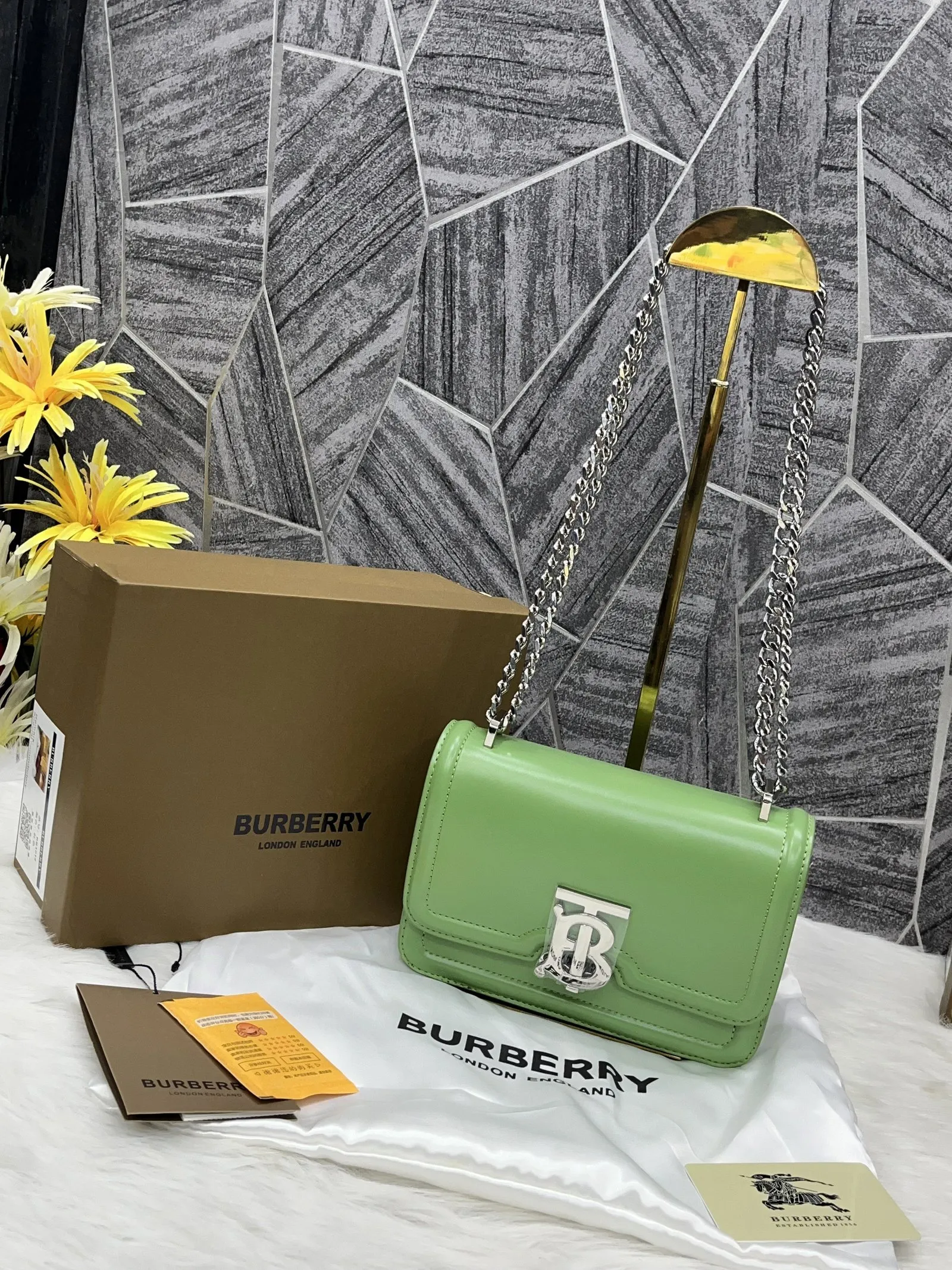 Be the first to review “Burberry TB Calfskin Brown Sling with Original Box Bags (Sling)” Cancel reply